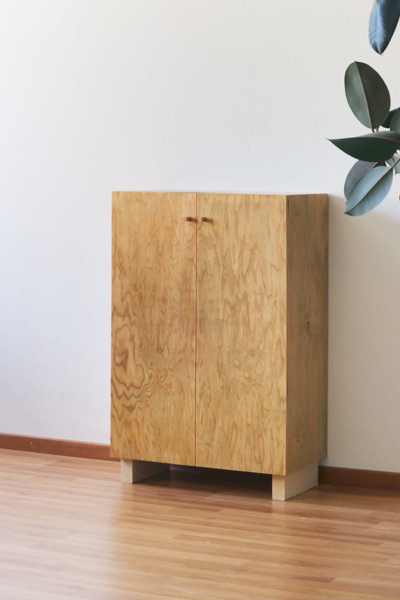 Ein schlankes Möbelstück bietet geschlossene Abstellmöglichkeit. Für das Wohnzimmer angedacht, nimmt es verschiedenartige Objekte auf: eine Schallplattensammlung, eine Auswahl an Digestifs, Reiseberichte zum Versinken in Tagträumen, das Kinoprogramm, einen Beamer samt unkontrollierbarer Verkabelung, ein Hantelset fürs Krafttrainig zuhause und vieles mehr! Klein und mit bescheidenen Präsenz im Raum stehend, bergen die zwei Ablagefächer jedoch dank ihrer grosszügigen Dimension Platz für Spontanes und Unvorhergesehenes.